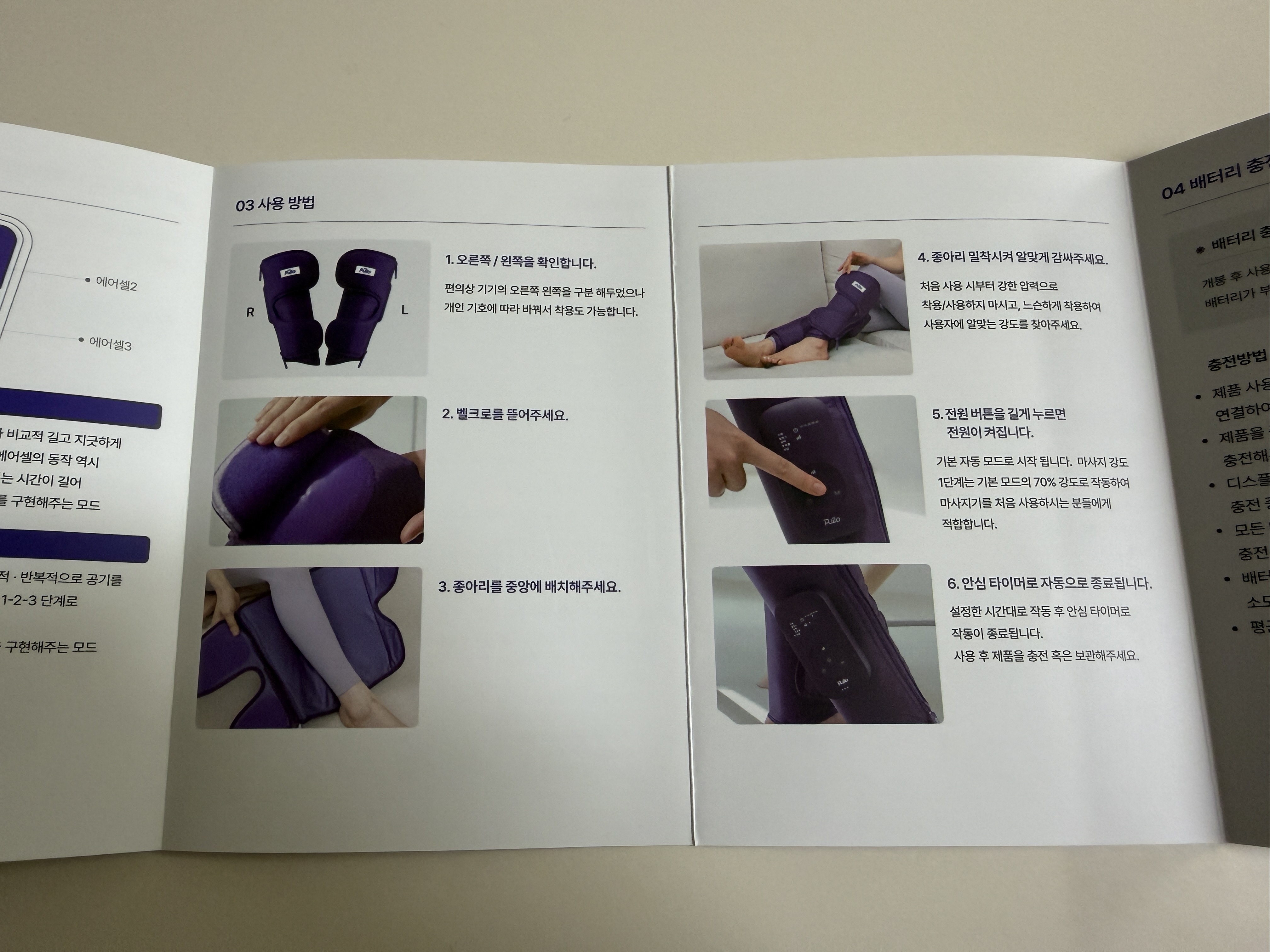 3개의 에어셀이 자동으로 4가지 코스를 반복해서 마사지 해준다더라고요